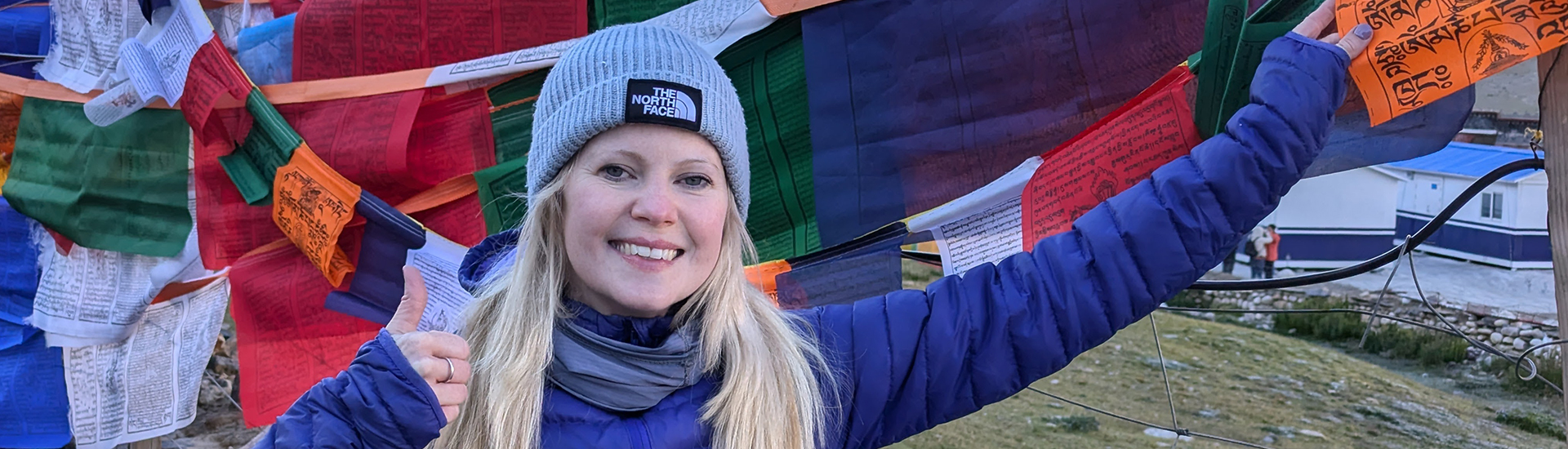 Praying under the prayer flags.