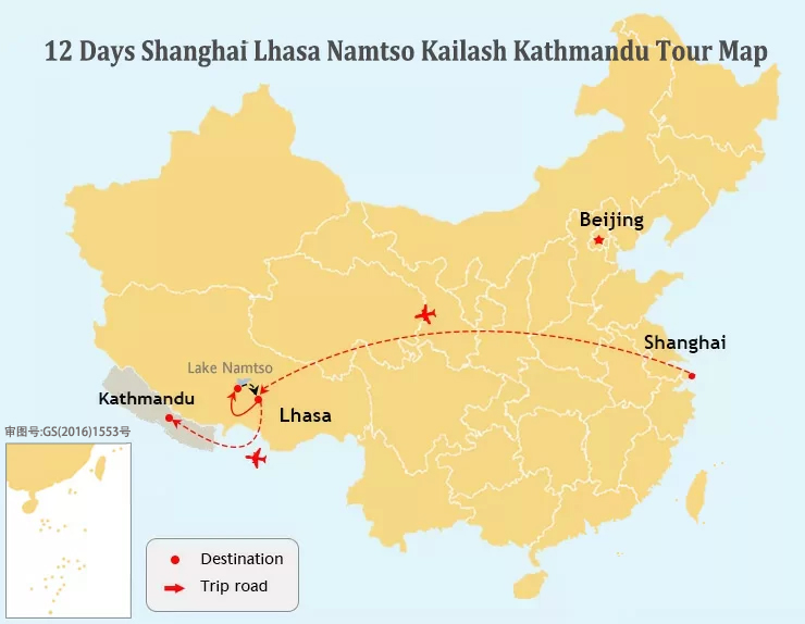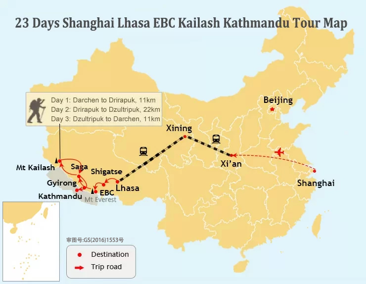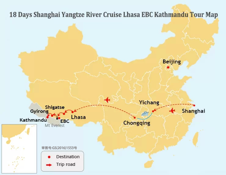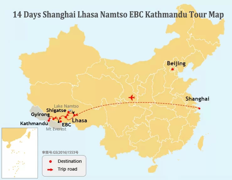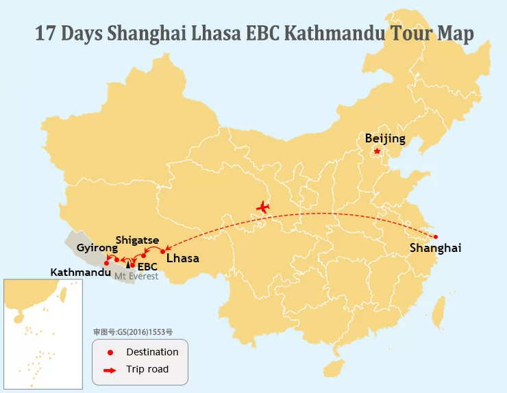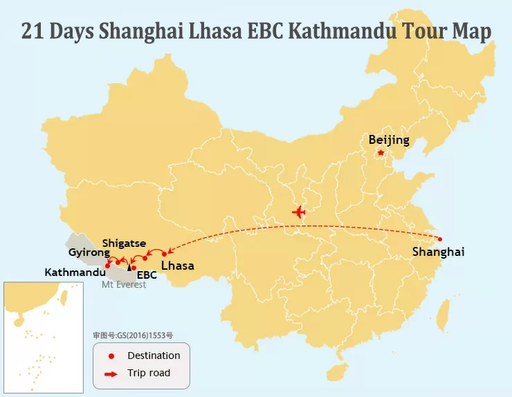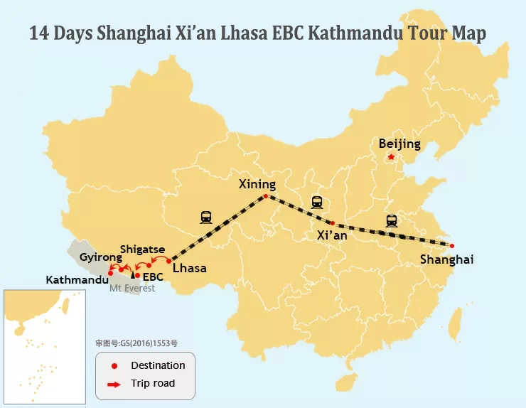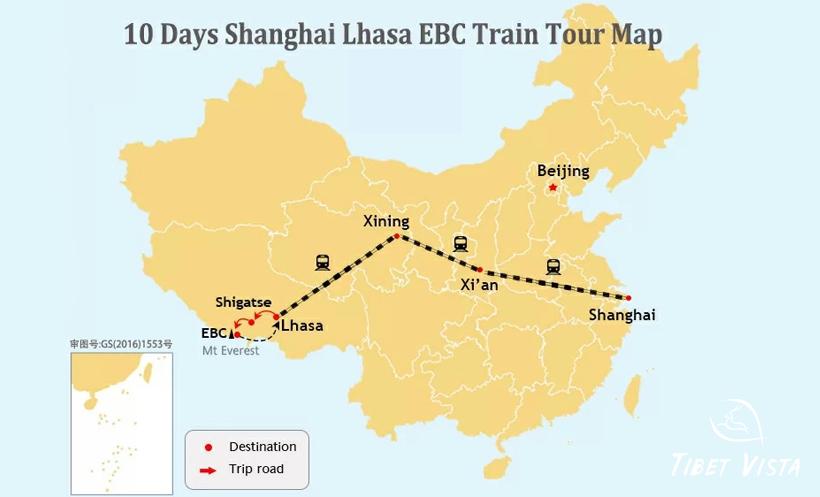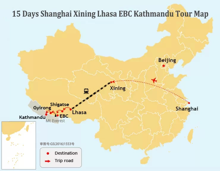 Tour Route: Train from Shanghai - Lhasa - Gyantse - Shigatse - Everest Base Camp - Lhasa