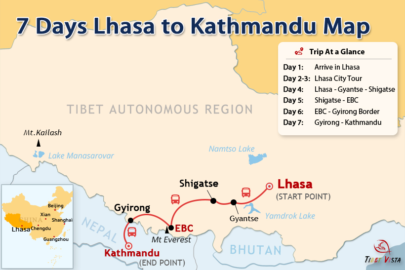 7 Days Private Tour from Lhasa to Everest Base Camp and KathmanduView DetailsTour Route: Lhasa - Gyantse - Shigatse - Everest Base Camp - Gyirong - Kathmandu