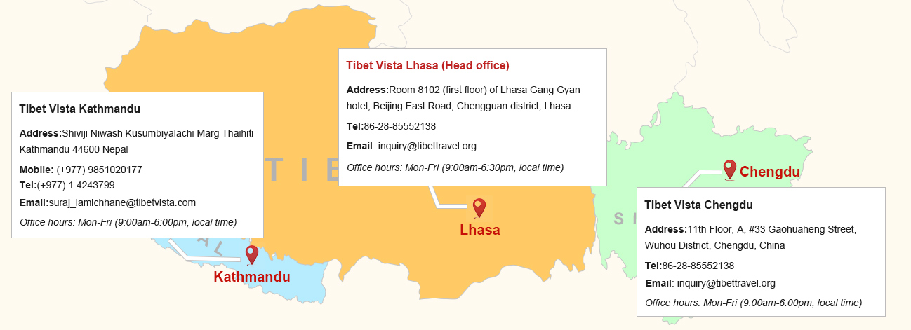 To facilitate your Tibet tour, we are also the first to set up offices beyond Lhasa in places like Kathmandu and Chengdu, providing you with easy access for Tibet entry and maximum flexibility for extended tours to Nepal and other Chinese cities.