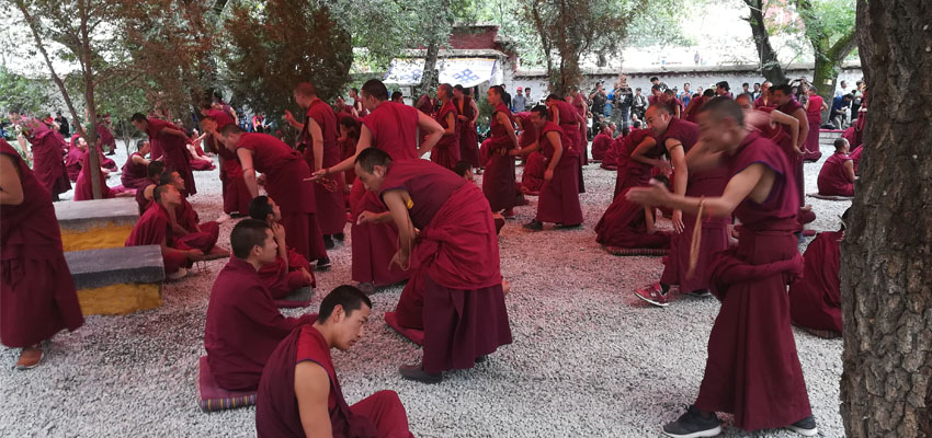 Then they took us to the Sera Monastery, where we could enjoy and surprise ourselves, in their courtyard, with the curious ritual of the monks debating in pairs. We could also see three colored sand Mandalas made by hand by the monks and visit a printing site of Tibetan religious texts. Although we ended the day tired, it was a gift to go at night, on our own, to see the illuminated Potala.