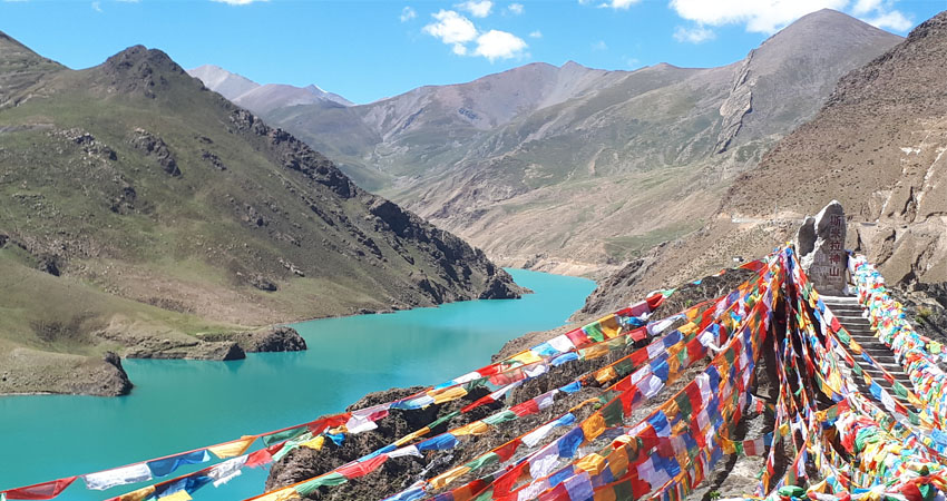 Then, we stopped on the Simila Mountain Pass to admire the turquoise color of the Manla Reservoir while the wind blew the multiple colorful praying flags, blessing all the flags givers with good luck. We could clearly feel the holy spirit of that location as fluttering praying flags surely take the blessing to the roof of the world forever.