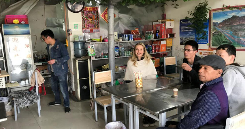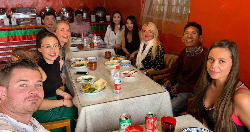 Having dinner at a local restaurant in Damxung, the city next to Lake Namtso.