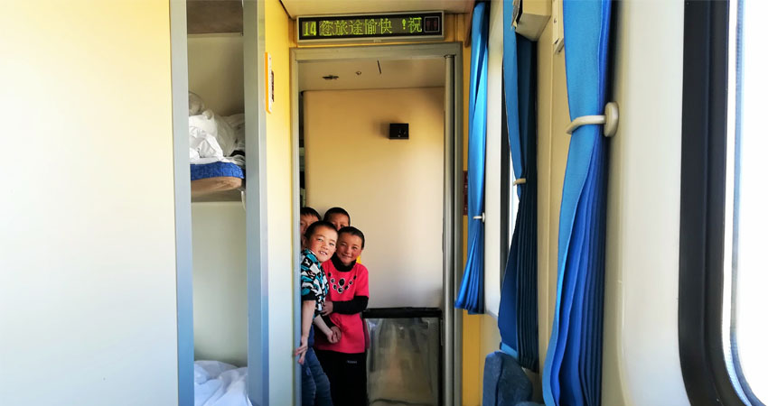 Curious kids in the Tibet train