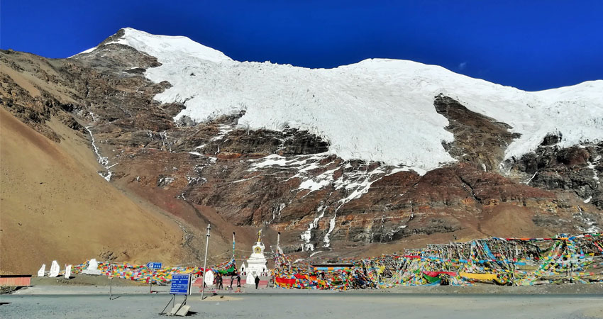 2) The Karo La glacier : not far from the sacred Yamdrok lake is the Karo La pass at 5030m. The pass meanders around the Noijinkangsang moutain culminating at 7191m. Between the pass and the summit is the Karo La glacier. When the sky is blue the view over the brown moutain and white glacier is incredible.