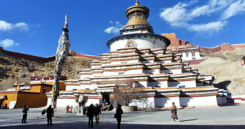 3) The Gyantse town : this small but historical town is a gem. It is situated at an altitude of 4000m and it used to be the 3rd largest town of Tibet and an important trade center. Its main sights are its fortress and the Palcho monastery that contains one of the most beautiful Kumbum or multi-storied Bhuddist stupa-like temple.