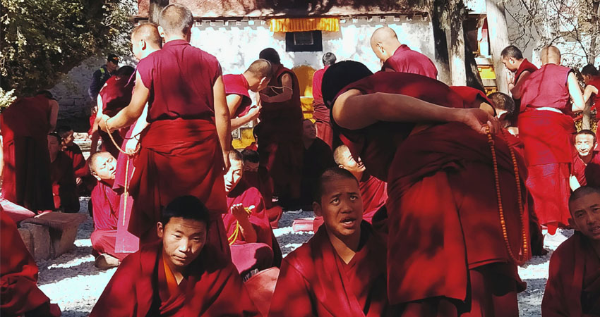 The sound is immense. I’m being guided through a Tibetan monastery and university, which you’d think would be the very essence of peace and harmony. And yet, only thirty metres away sit hundreds of monks - all draped in their customary blood-red robes - shouting animatedly in what seems like quite an aggressive manner. It’s certainly one of the most intriguing parts of my trip.