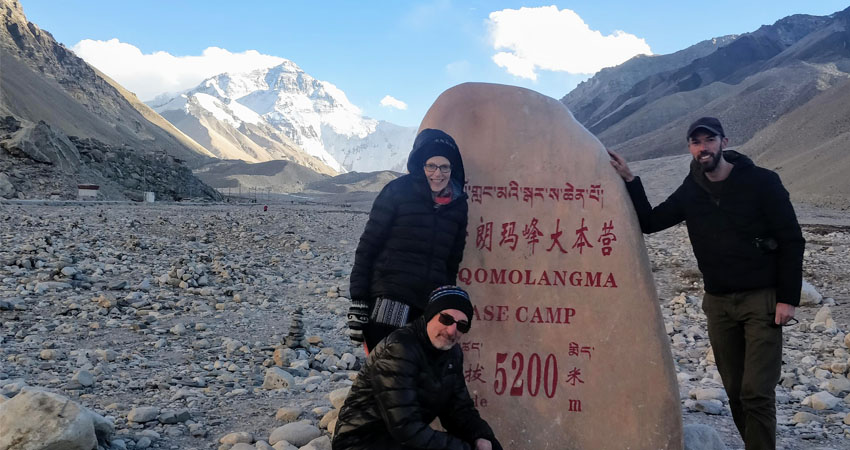 Wearing all of our clothes to stay warm at the Everest base camp 5200m above sea level