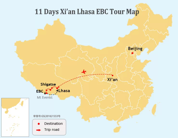 10 Days Xi’an to Lhasa and EBC and Kathmandu TourTour Route:Xian - By flight - Lhasa - Gyantse - Shigatse - EBC - By overland - Kathmandu