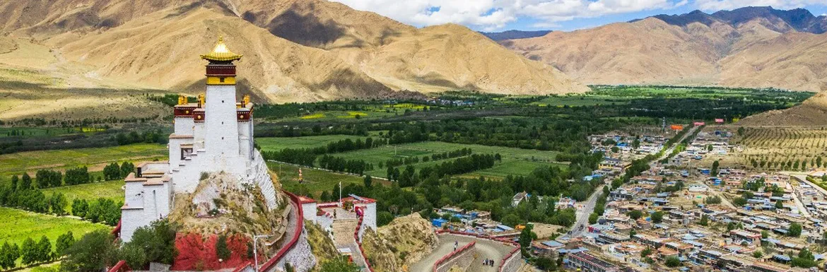 Overlook the fertile fields of the Yarlung Valley from Yumbulakang Palace(3,700m).