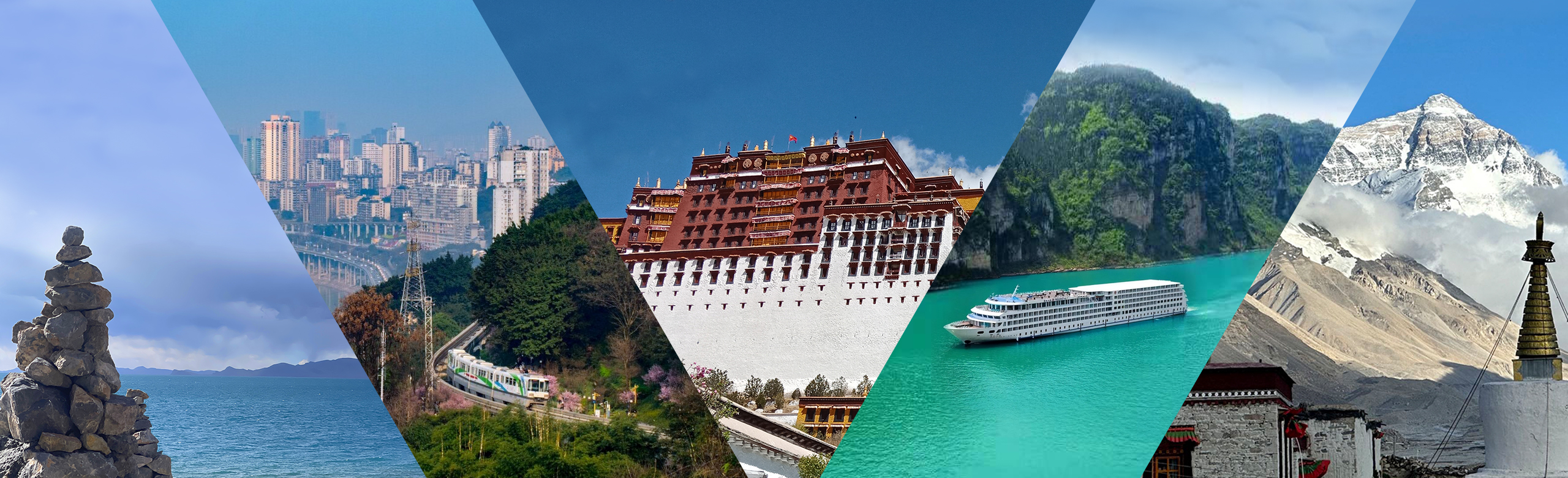 The Chongqing to Lhasa train takes you from the upper reaches of the Yangtse River Cruise, passes through the Chengdu Plain, crosses the Sichuan Basin, crosses the Qinling Mountains, passes by Xining, and finally reaches the Holy city Lhasa on the majestic Tibet Plateau.