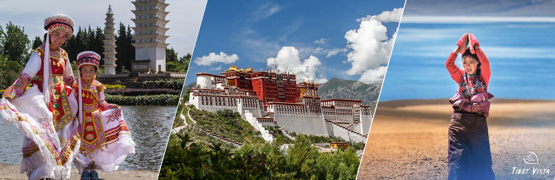 For a classic Yunnan Tibet tour, you may start your journey by visiting Kunming, Dali, Lijiang, or Shangri-la, four hot spots of Yunnan travel highlights before flying directly to Lhasa to cover Tibet’s most landmark attractions.